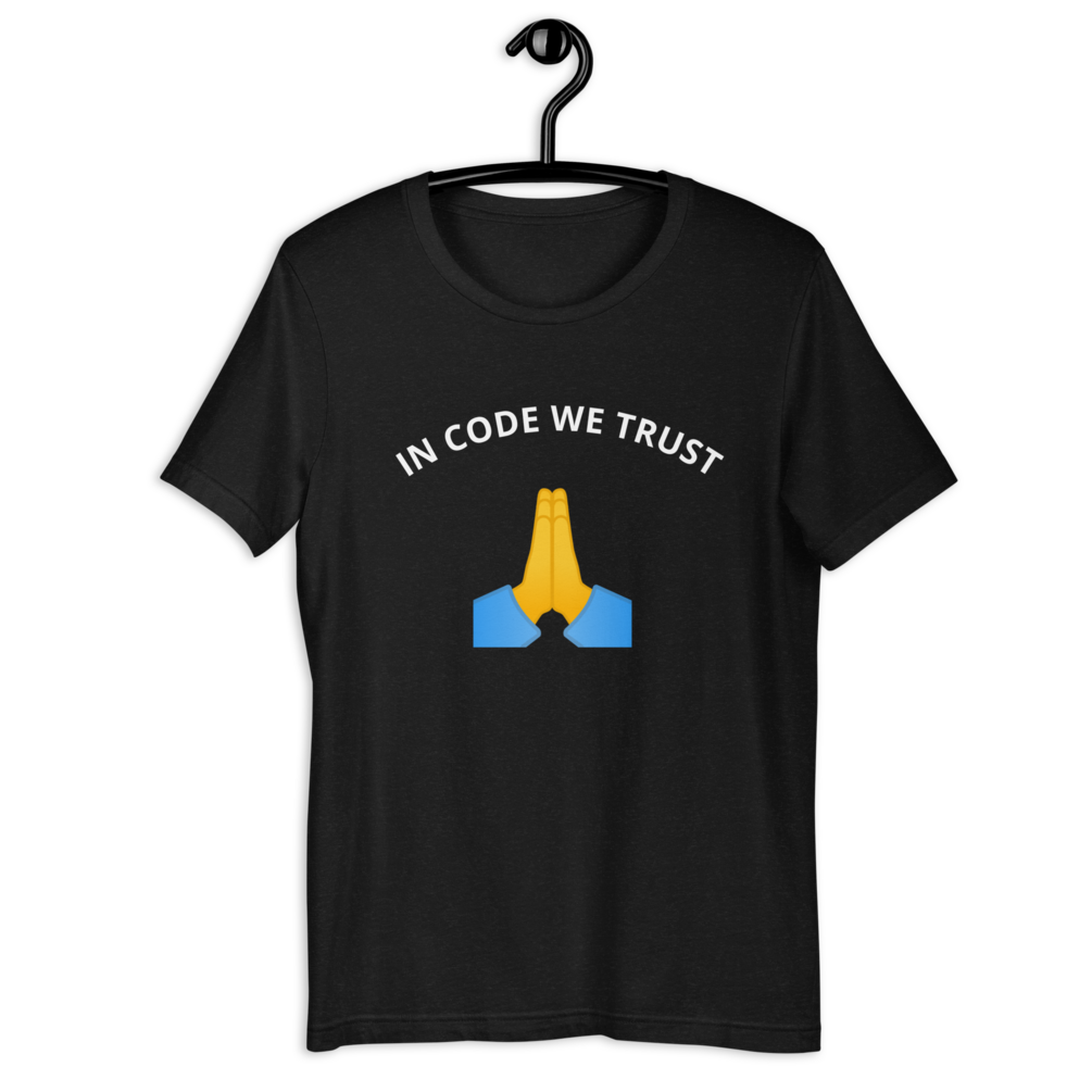 T- Shirt In code we trustProgrammingAcademyJava€2525eurXS€2525eurS€2525eurM€2525eurL€2525eurXL525eurQuantityI want this!Add to wishlist New wishlistShareShare on XShare on Facebook Copy linkCopy product URL